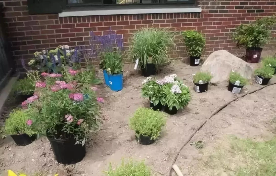 买回植物后,不要急着挖坑定值。先按照设计的草图,将植物摆放到位,再观察效果是不是符合预期,如果不符合,可以随时做出调整,以达到最佳观赏效果。